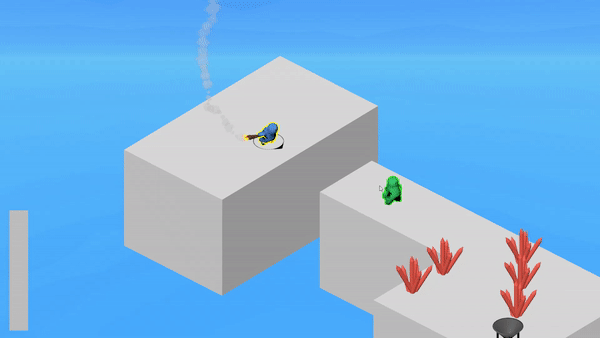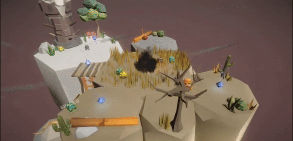 Control a series of blobs to transport a lit torch across a level in order to light the bonfire.